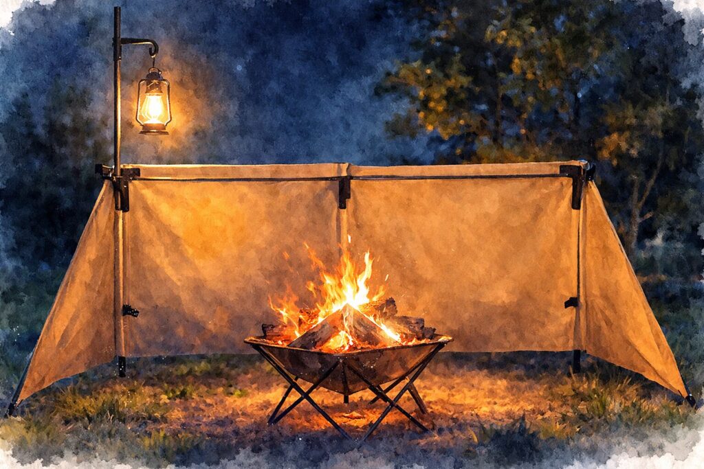 焚火陣幕で変わる夜の静けさ|キャンプで風の層が組み替わる瞬間