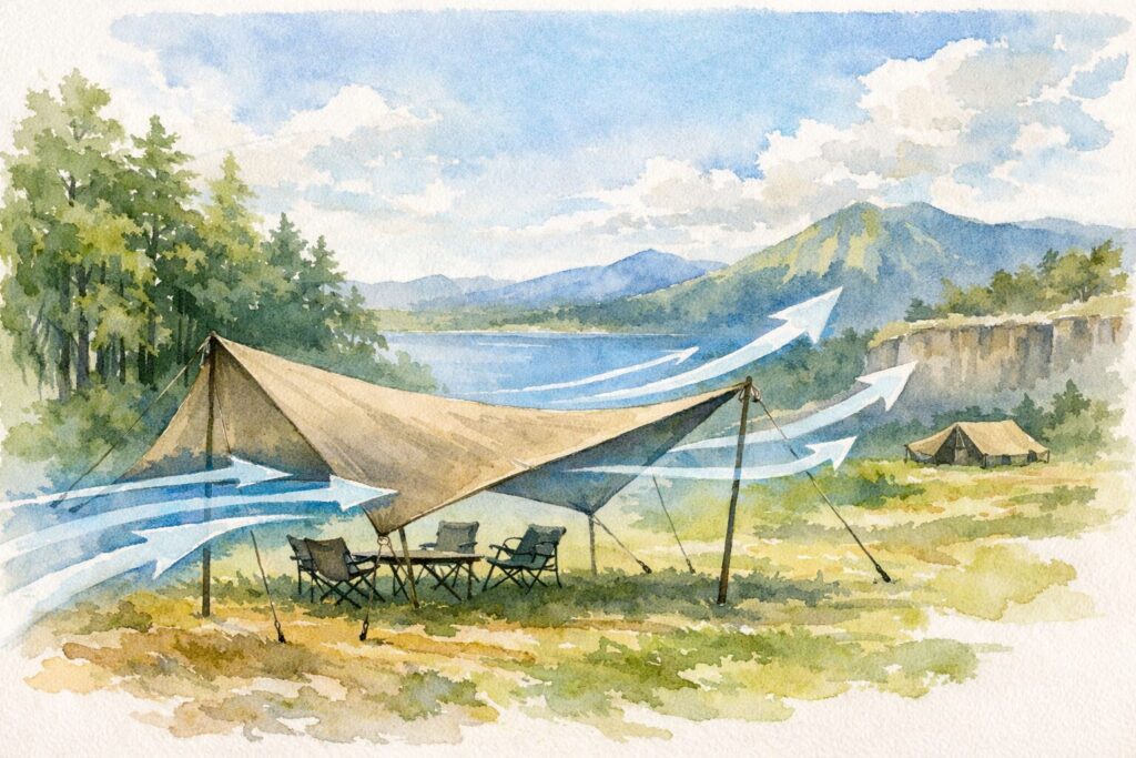 風の流れを理解すると、タープの角度・高さ・向きの理由が腑に落ちます。