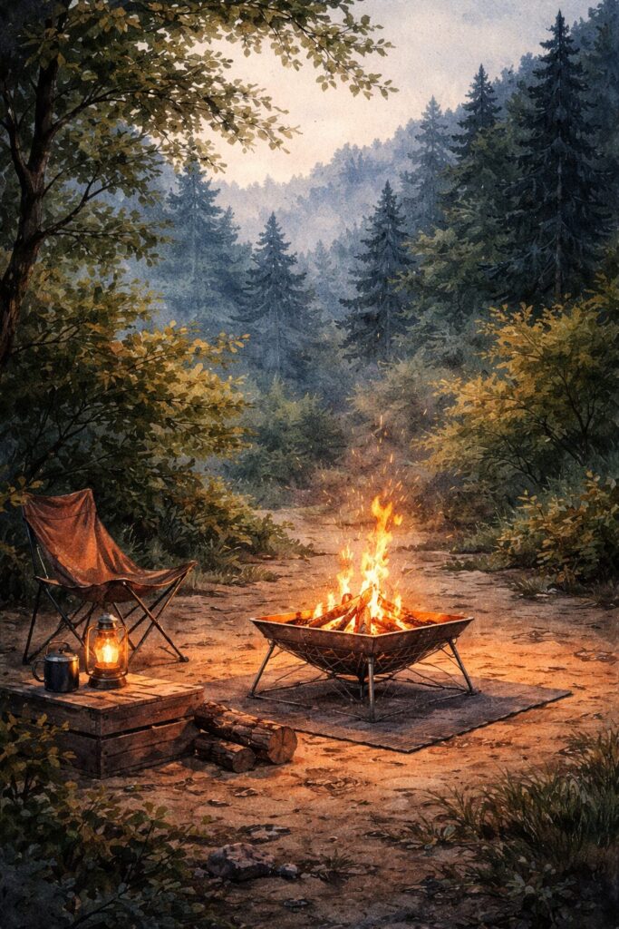 🔥 ① 焚き火台の高さ|影と光を支配する“火の層”