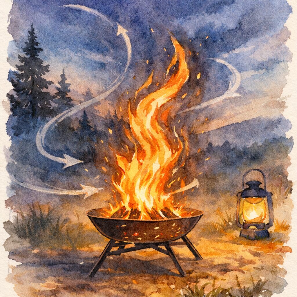 風がつくる火の静けさ|揺れ・煙・温度・安定の“外力構造”を読み解く